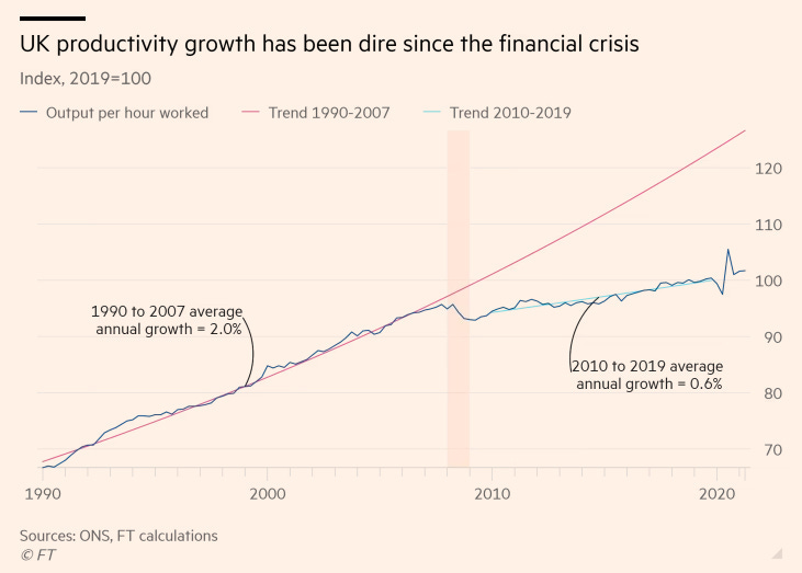 Of course, Britain does attract highly skilled immigrants too, it’s not all illegal car washers. However, global economic trends are working against Britain as a desirable destination for the best and brightest. One of the important economic stories of the 21st century has been the divergence between Britain (and Europe more widely) and America. Up until 2008, British GDP growth broadly tracked America’s, but since then the two countries have diverged significantly.