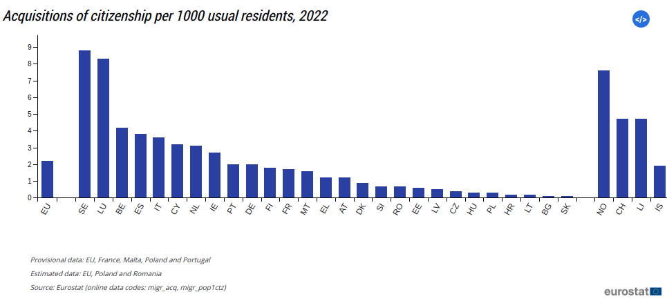 As we will see later, this different approach can be seen in who is given citizenship, even if the raw numbers of labour migrants are quite high.