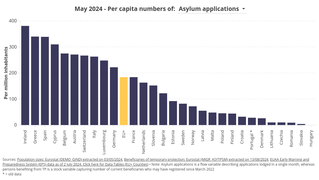 In fact as of May this year Sweden has one of the lowest per capita rates of asylum applications in Western Europe.