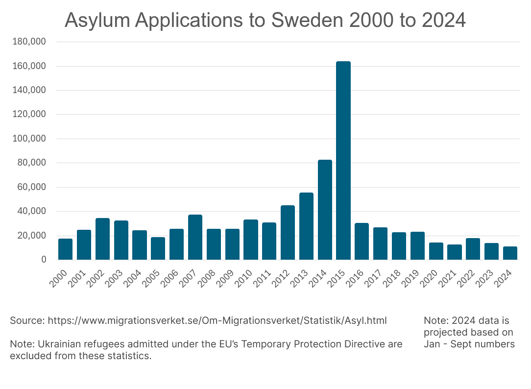 In early August of this year however Minister for Migration (and pantsuiter) Maria Malmer Stenergard of the Moderate Party announced that more people were now leaving Sweden than arriving and that asylum applications were the lowest since 1997. This was claimed to be as a result of the government’s migration policy ‘paradigm shift’ since 2023 involving stricter asylum, labour migration and family reunification requirements.