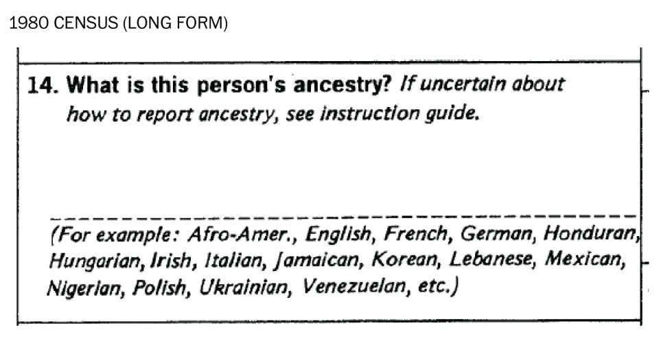 It’s interesting that the ancestry question was first added in the 1980 census at the urging of ethnic organisations who wanted to count their ‘members’ better. The census bureau resisted it for being imprecise (Waters 1990: 10).